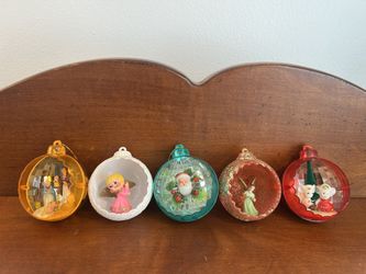 Set of 5 Vintage Jewelbrite Diorama Christmas Ornaments About 2.25” wide $50New Milford, CT