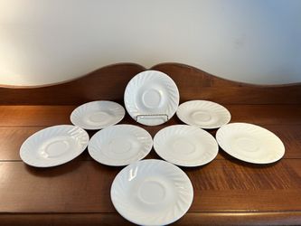 Set of 8 Corelle by Corning Frost White Swirl Saucers 6.25” diameter - some utensil marks$25New Milford, CT