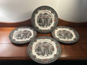4 Royal Stafford Christmas Home Dinner Plates 11” diameter, excellent condition$100New Milford, CT