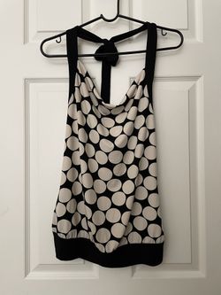 Cowl Neck Women’s Halter Top Black with Ivory Polka Dots Tie Neck Size Large$15Thousand Oaks, CA