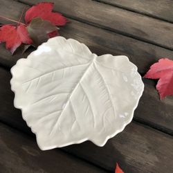 8" Fall POTTERY BARN Ceramic Leaf Hanging Plate Wall Art Ivory White Leaves PB $15Woodinville, WA