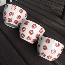 Crate and Barrel Nesting Mixing Bowls Set of 3 Red & White Flower Holiday$10Bothell, WA