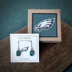 Super Bowl LIX Philadelphia EAGLES Crystal Earrings - Teal Green / Gun Metal BLING Football Game Day made w/ Swarovski® stones 8mm$20Bothell, WA
