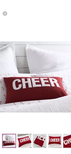 Pottery Barn Christmas CHEER Red Cream Textured Throw Pillow Cover 14x20 Holiday Christmas $30Bothell, WA