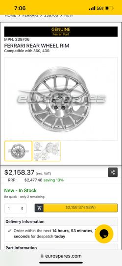 Ferrari Rear Wheel (Brand New In Box!) $2,000Thonotosassa, FL