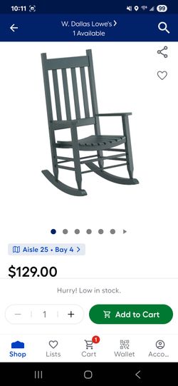New In Box Gray Wood Rocking Chair From Lowes.$90Dallas, TX