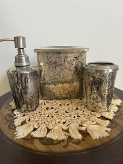 3 Piece Stainless Steel & Glass Tissue Box Cover, Soap Dispenser & Toothbrush Holder Made in India$40Miami, FL