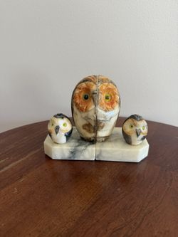 Pair of Vintage MCM Italian Hand Carved Alabaster Stone Carved Owl Bookends$100Dundee Township, IL