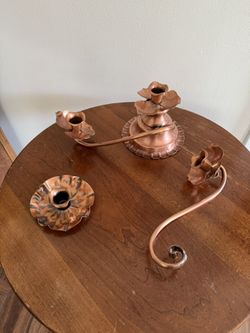 Georgian Copper Candelabra Twist 3 Candlestick Holders Rose Flower Broken$40Dundee Township, IL
