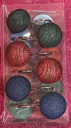 Blue Red Green Yarn Balls Ceramic & Metal Set Of 12 Shower Curtain Hooks NEW in Package!$10Spring Hill, FL