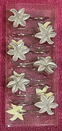 Prairie Brown Flower Set Of 12 Ceramic & Metal Shower Curtain Hooks NEW in Package!$10Spring Hill, FL