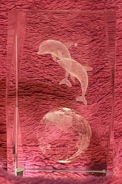 3D Laser Etched Crystal Glass Paperweight 2 Dolphins & Globe 3” x 2” x 2” NEW!$15Spring Hill, FL