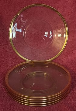 Vintage 8” Clear Glass Gold Trim Salad Appetizer Plate Set Of 6 FLAWLESS!$10Spring Hill, FL