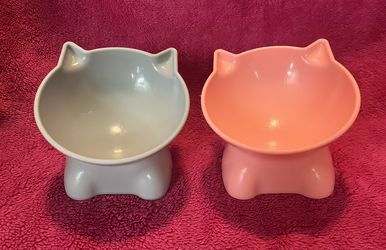 Set Of 2 Cat Shaped Elevated Food Bowls Blue AND Pink 4” Tall x 5” Round NEW!$5Spring Hill, FL