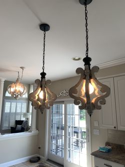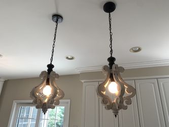 Pair Of Single Light Distressed White Wooden Kitchen Island Light$50Marriottsvl, MD