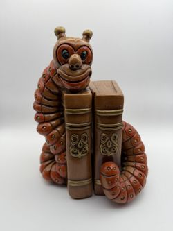 Bookworm Chalkware Bookends Vintage 1971 Progressive Art Products Orange$150Tacoma, WA