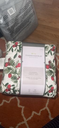 Threshold Flannel Sheet Set with a festive red berry and green foliage pattern Queen $35San Diego, CA