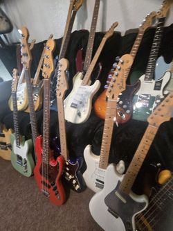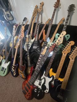 ESTATE SALE Vintage Fender Ibanez Epiphone Gre tsch Jackson USA Japan Mexico Strat Tele Mustang Guitar Bass 4 5 6 String Schecter P Jazz Case Black$1Redlands, CA
