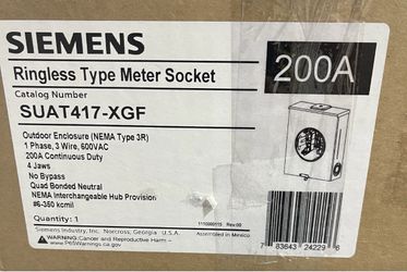 Siemens SUAT317-0GF 200 Amp Ringless Type Meter Socket Outdoor Enclosure$60Los Angeles, CA