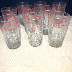 Set Of Nine Red White And Blue Stars Fourth Of July Glasses$10Garden Grove, CA
