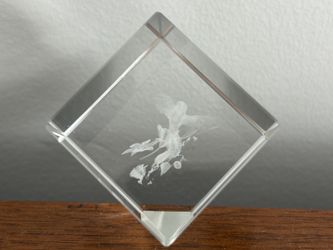 Hummingbird Floral Laser Etched Crystal Glass Cubed Paperweight Holographic 3D$15Long Beach, CA