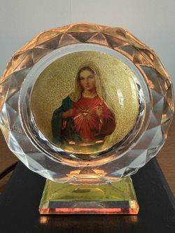 Virgin Mary Sacred Heart Acrylic Vtg Medallion Gold Catholic Prism$20Long Beach, CA