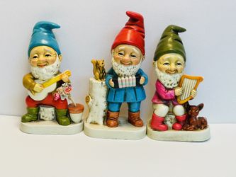 Vintage Set Of 3 Homco Ceramic Garden Gnomes With Musical Instruments And Forest Friends$25Lynnwood, WA
