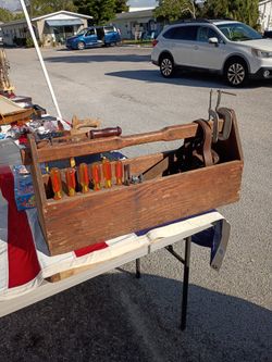 Vintage Hand Built Wood Toolbox With An Assortment Of Tools $75Largo, FL