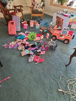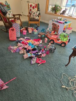 AMERICAN GIRL & OUR GENERATIONS CLOTHES & DOLL CASES, SCHOOL, JEEP, COFFEE SHOP SEE DESCRIPTION $225Grand Terrace, CA