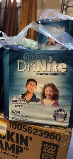 32 packs of Comfees DriNite premium youth pants S/M 38 -65 + Lbs. ( 17-29 + kg) 17 youth pants per pack Pick up or meet up ⬆️ in Powder Springs Ga $160Powder Springs, GA