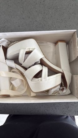 Women's Wedding Shoes Satin Platform Block Heel Open Toe Wedding Sandals Bridal Shoes Pearl Ribbon Tie $35Anaheim, CA