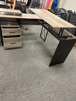 Bestier - L-Shaped Computer Desk with Drawers and Monitor Stand - Dark Gray$150Houston, TX