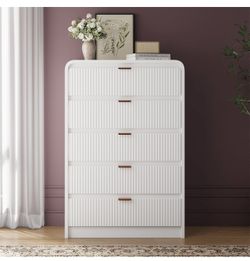 FURSUN Fluted 5 Drawers Dresser for Bedroom, 48" Tall Wooden Modern Dresser with Metal Handle, Curved Profile Design, Storage Organizer for Bedroom, L$140Houston, TX