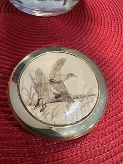 Vintage Brass Barlow Paperweight Scrimshaw Etched Ducks on the Rise in Miami. $19Medley, FL