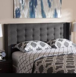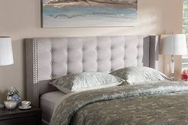 Modern And Contemporary Fabric Button-Tufted Nail head Queen Size Winged Headboard - Greyish Beige$149Bensenville, IL