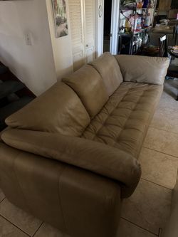 Couch sofa, bed tan leather 8‘ L queen size air mattress$225Delray Beach, FL