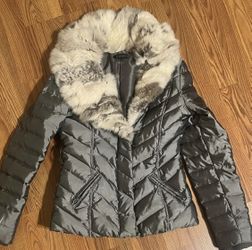 Bebe Puffer Short Coat With Fur Trim Vintage Size Small Grey Multi Color Fur$75San Antonio, TX