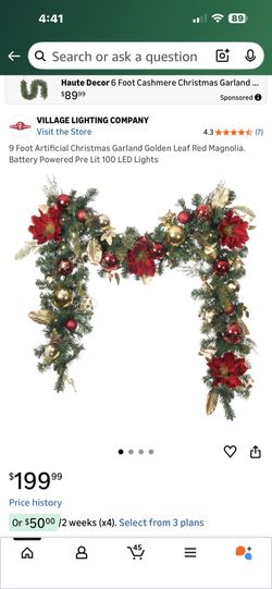 Foot Artificial Christmas Garland Leaf Red Magnolia. Pre Lit 100 LED Lights$100Sun City, AZ