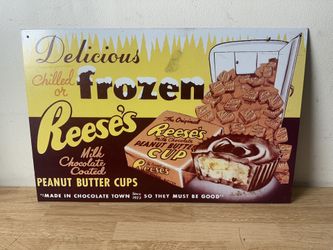 VINTAGE HERSHEY REESE'S PEANUT BUTTER CUP 16"X10" TIN METAL SIGN ADVERTISING$25Parsippany-troy Hills, NJ