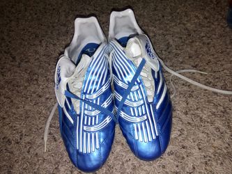 Adidas Soccer cleats Blue & white traxion hard ground Mens Sz 11$45Huntsville, TX