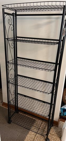 Folding black metal shelving 6 shelves on wheels storage$35Naperville, IL