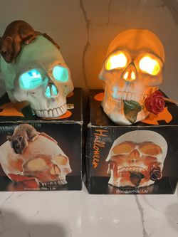 Vintage set of 2 Halloween Porcelain Skull light up Night Lights nite lite$40Naperville, IL