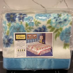 Vintage Beacon Marigold Twin Full Blanket 72x90 Floral Blue Satin Trim Retro$25Naperville, IL