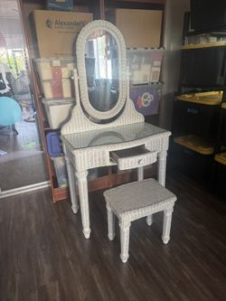 Beautiful White Wicker Vanity With Mirror And Matching Stool$100Hemet, CA