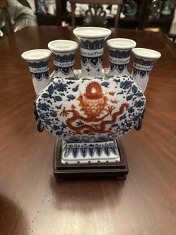 Antique Blue and White With Red Dragon Chinese five finger Vase$140Bellevue, WA