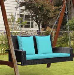 2 person wicker hanging porch swing with 2 back cushions and seat cushion.$125Huntington Park, CA