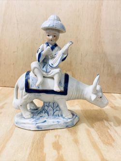 Vintage Oriental Blue & White Figurine Boy Riding Buffalo $35Forest Park, IL