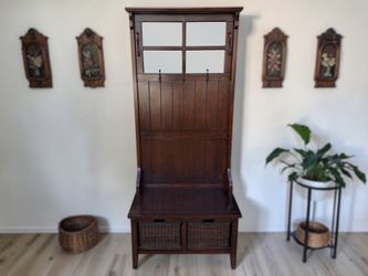 Pier 1 Alcott Dark Brown Wood & Wicker Hall Tree$180Ankeny, IA