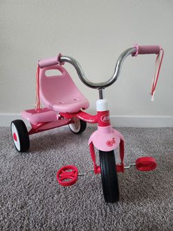 Radio Flyer Fold 2 Go Tricycle pink. The storage bin is missing the cover