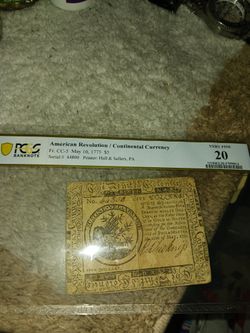 Continental Currency 1775 $5 Bill Pcgs Grade Very Fine 20$625Lake View Terrace, CA